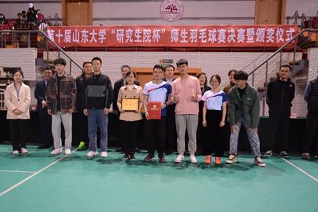 党委副书记王君松、研究生院常务副院长、党委研究生工作部部长刘国亮、研究生院副院长、党委研究生工作部副部长高弟、体育学院副院长石振国、研究生院综合办公室主任孙艳洁、研究生培养办公室主任许峰、裁判长董雁超、副裁判长祝曦东莅临现场并为获奖团队和个人颁奖。我院荣获优胜奖,并在网络投票中获得最具人气团队奖。在此次比赛中,我院虽然止步16强,但是师生们展现出了百折不挠、勇敢拼搏、永不放弃的体育精神,相信我院在来年的比赛中,获得佳绩。