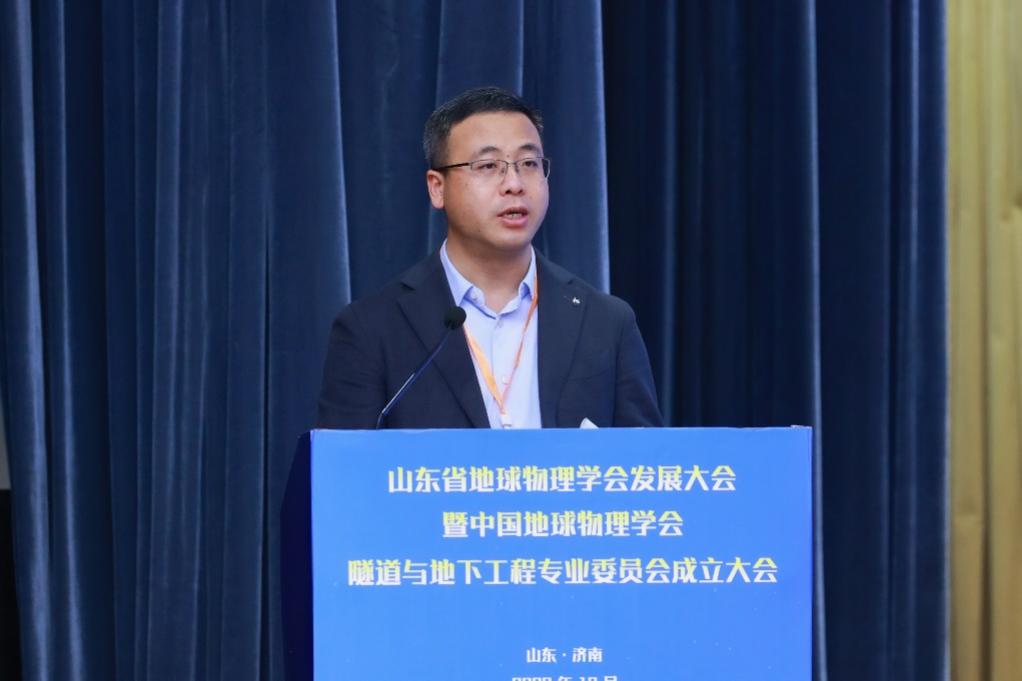 中国地球物理学会副理事长兼秘书长郭建致辞,向大会的召开表示热烈的祝贺,介绍了中国地球物理学会的发展历程,肯定了山东省地球物理学会成立20年来取得的优异成绩。他表示,成立隧道与地下工程专业委员会是一项创新举措,呼吁专委会强化思想引领、加强学科交叉、深化校企联合,推动地球物理科技在隧道与地下工程领域的前沿技术创新。