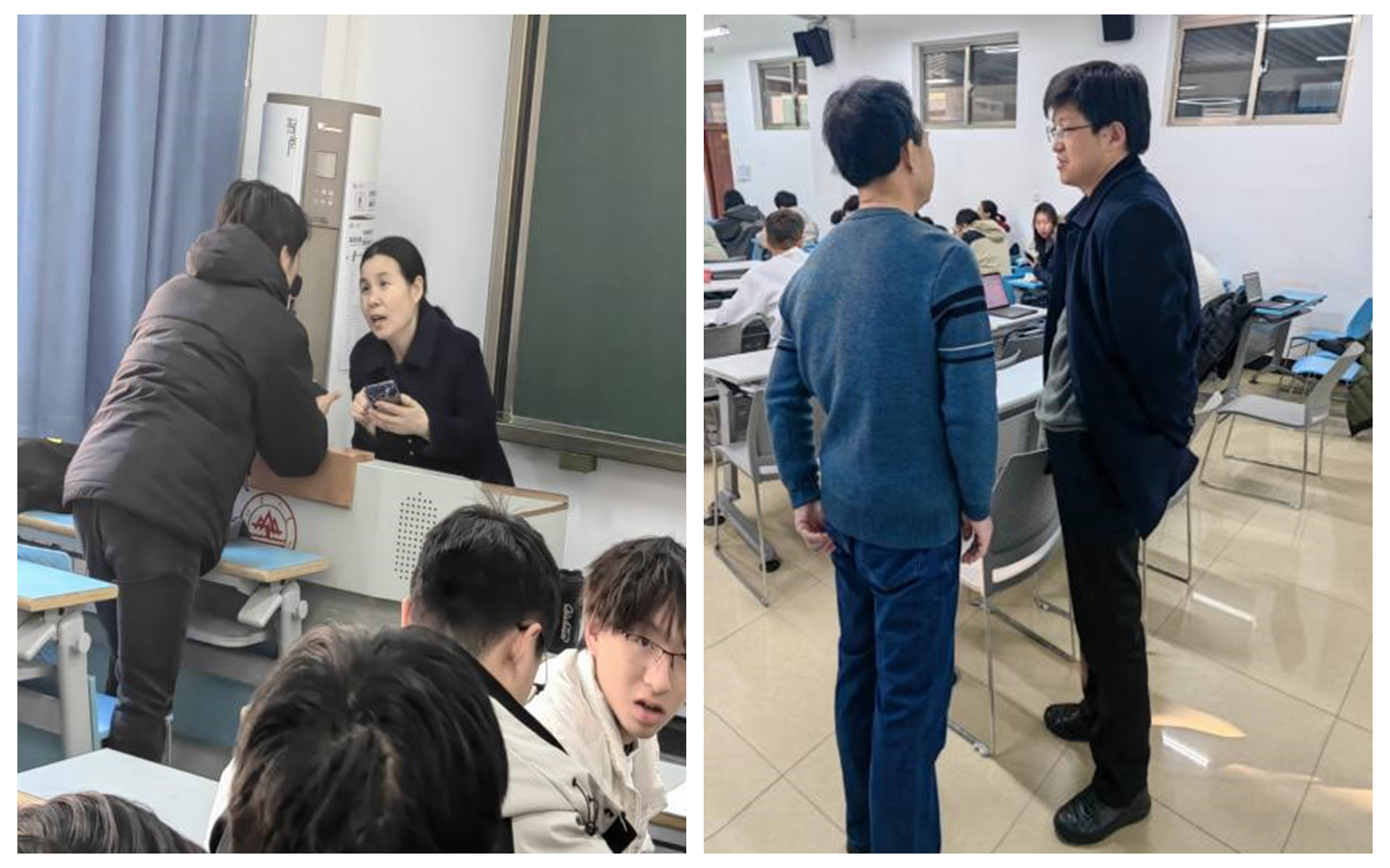 226日新学期第一天,为全面了解新学期课堂教学工作开展情况,强化学院教风、学风建设,学院相关领导、校院两级督导员和青年教师深入教学一线,实地观摩及督导,了解新学期教学开展情况。