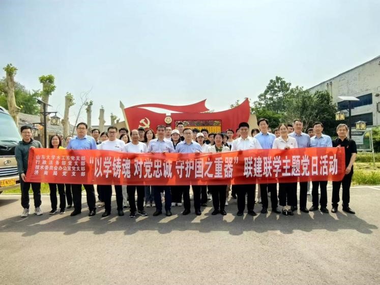 水工党支部组织水利系师生与南水北调山东干线公司行政法务部党支部、技术委党支部、济南局党支部联合开展“以学铸魂 对党忠诚 守护国之重器”主题党日活动和毕业实习活动,教育引导毕业生党员深刻领悟“两个确立”的决定性意义,更加自觉增强“四个意识”、坚定“四个自信”、做到“两个维护”,坚定理想信念、树立党员形象,主动担当作为。