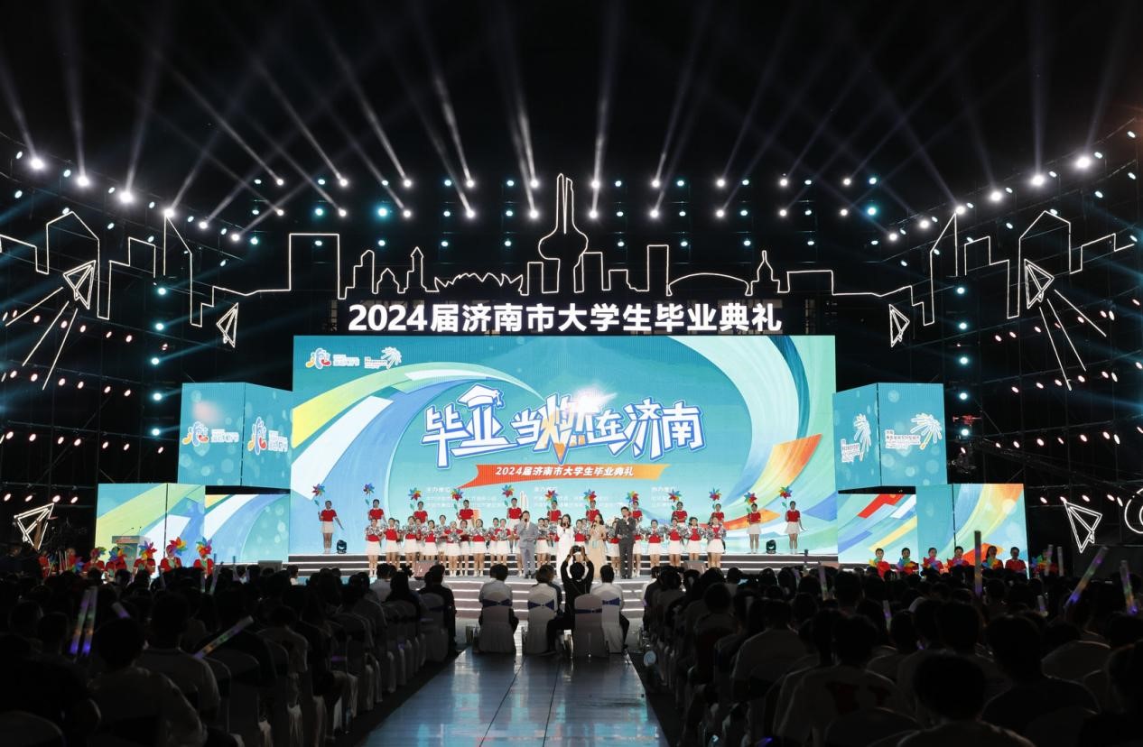 济南市大学生毕业典礼是济南以城市之名用最燃的热情、最足的诚意、最真的情怀,为驻济毕业生献上一场专属的毕业盛典,也是济南吸引人才、招纳贤士的重要举措。今年,在济南综合实力更强、科创优势更足、营商环境更好、生活品质更优、人文气息更浓的背景下,济南正在加快建设青年发展友好型城市,进一步完善人才政策“双30条”,出台《支持高校毕业生就业创业40条(2024版)》,为广大毕业生提供更加精准的就业创业支持和更加全面生活保障。