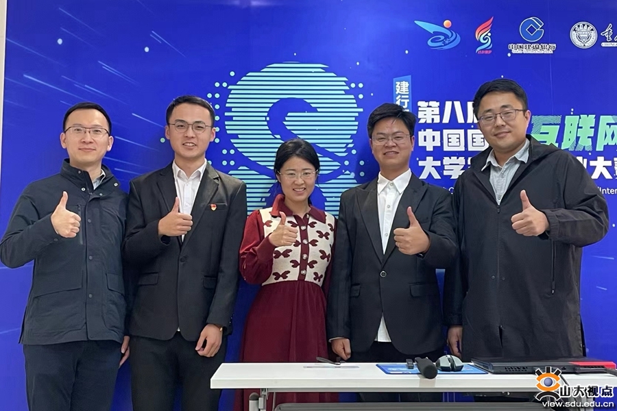 图10:支部党员马晨阳同志荣获第八届中国国际“互联网+”大赛国家金奖(图右二为马晨阳)