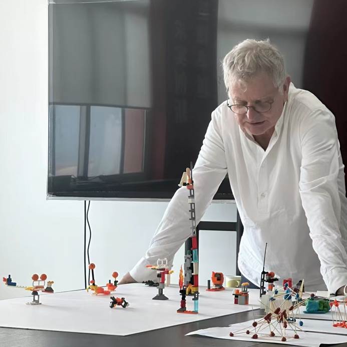 7月9日Nägeli教授所带来的第二场专题讲座中谈到了建筑内部和外部空间的定义及其相互关系,并通过优秀的建筑作品实例展示,探讨了在设计中如何处理建筑内外空间的关系。随后,在教授的指导下,同学们进行了题为“Disaster Building(灾难建筑)”的思维训练,以乐高积木为材料来表达和展现内心最伤心的一件事。该训练启发了同学们的创造性思维,使学生理解了主观情感如何转化为物质形式。Nägeli教授和赵康老师耐心地对每位同学给予了专业而详尽的评价和指导。