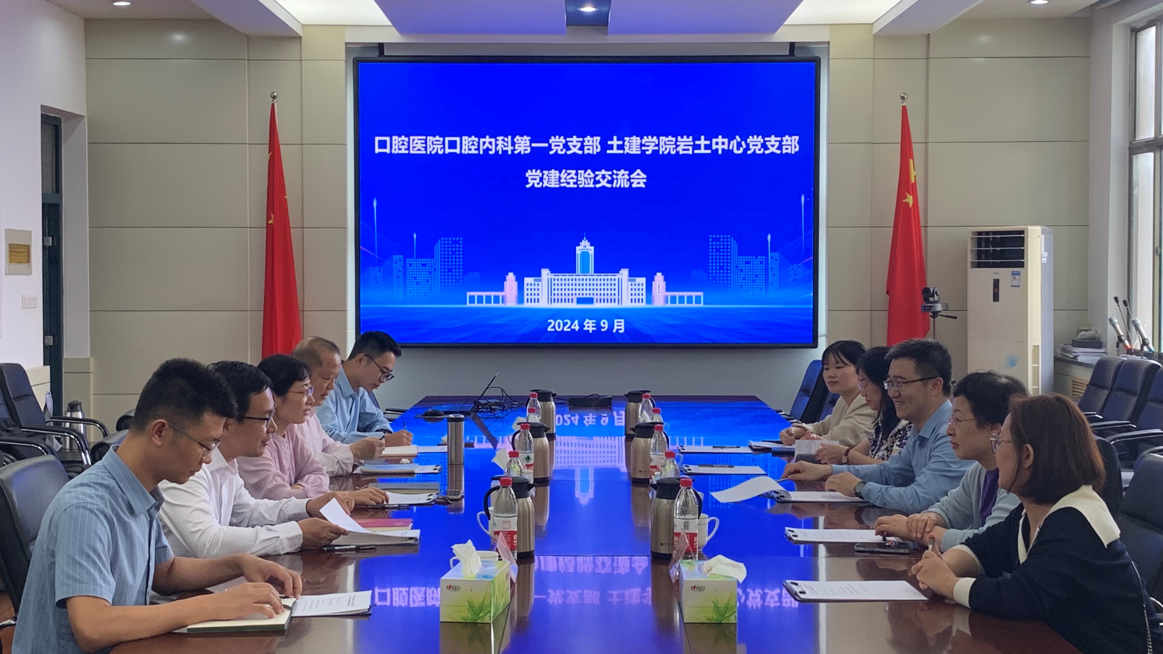 柳松介绍了口腔医院基本情况,作为第四批“全国党建工作样板支部”培育创建单位,口腔内科第一党支部面向人民生命健康需求,积极探索党建与业务融合模式,创新开展党员义诊活动,不断提升群众口腔保健意识和医疗服务质量。支部书记宋爱梅介绍了第一支部机构框架、典型做法及工作思路,她表示,后续加强与岩土中心党支部交流,汲取经验,做好支部培育创建工作。
