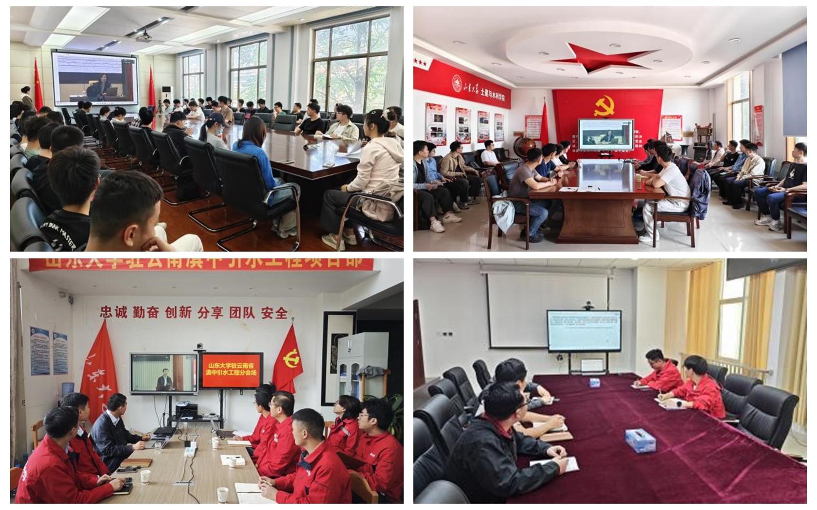 在兴隆山校区教学楼5410、千佛山校区水利楼、多个工程现场设分会场,组织师生党员集中收看专题辅导报告会。