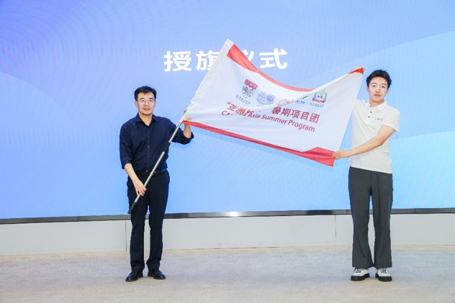 授旗仪式上,易校长为我授旗。看着挥舞的旗帜,我仿佛看见了八月这趟精彩的旅程,让我更加坚定了出国交流的选择是无比正确的。
