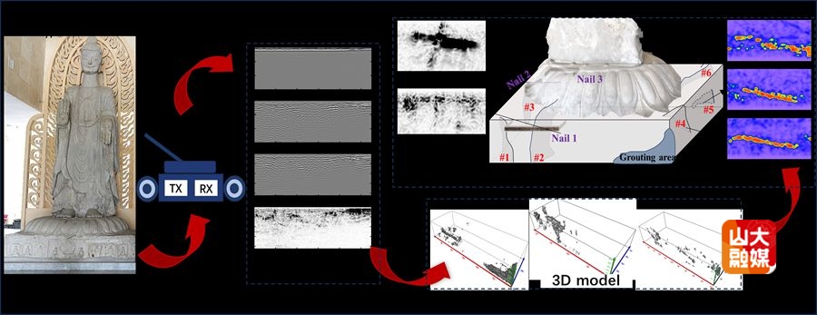 工程软件系孙怀凤教授团队,数智考古与中华文明特色分中心、文化遗产研究院李力副教授团队与山东省文物保护修复与鉴定中心、青岛市博物馆开展合作,在国际权威期刊Journal of Cultural Heritage在线发表研究论文“Decoding the stone Buddha: Three-dimensional ground penetrating radar attribute insights into cracks and restoration history of Sumeru throne”(JCR Q1、中科院艺术学一区)。51视频