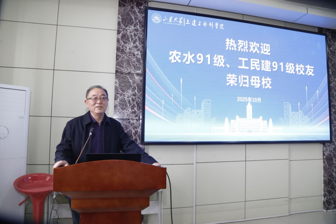 秦承涛深情回顾了当年与学生们共同度过的难忘时光,对校友们取得的成就感到由衷自豪,并勉励大家继续发扬山大土建人的拼搏精神,在新时代再创佳绩。