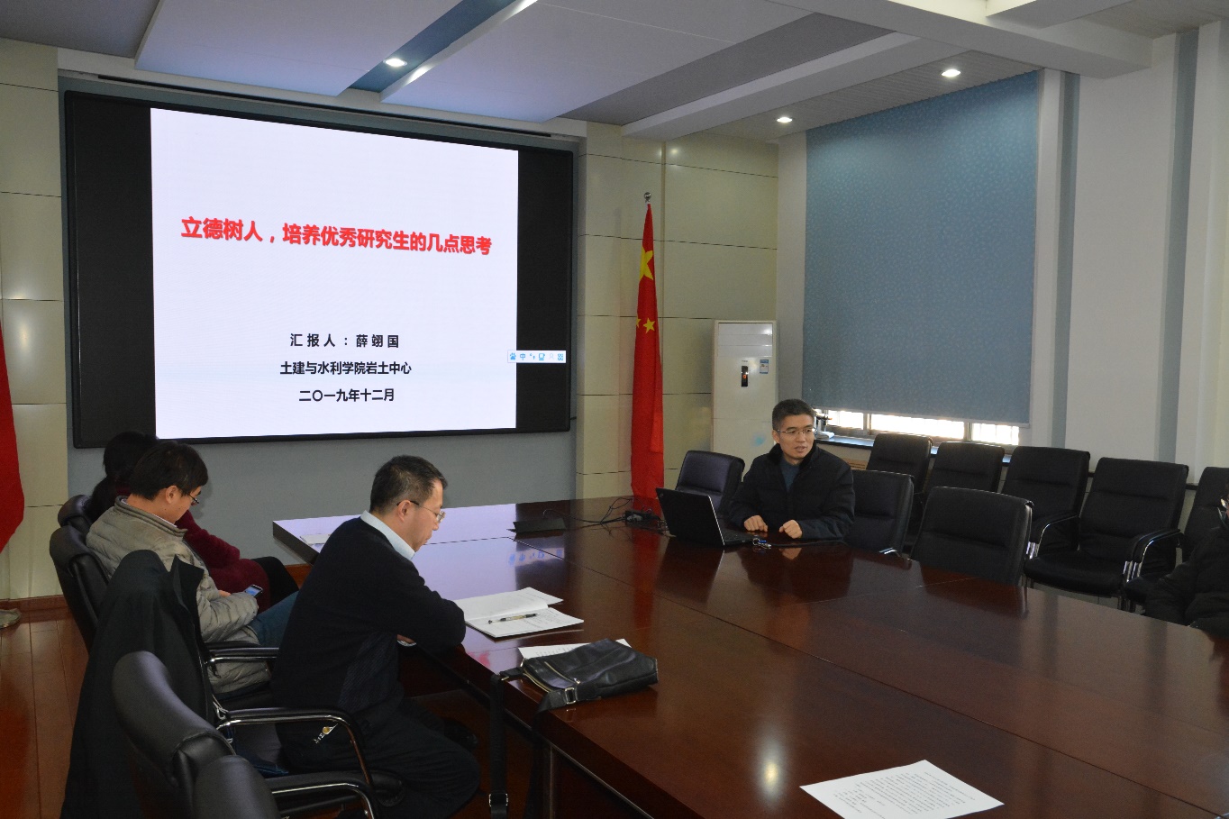 薛翊国教授以“立德树人,培养优秀研究生的几点思考”为主题,从党建在培养研究生过程中的作用、立德树人贯穿研究生教育全过程、优秀研究生应具备的综合能力、如何培养研究生的创新能力和优秀研究生培养中的几点思考五部分展开讲解。结合习近平新时代中国特色社会主义思想和党的十九大精神,他强调岩土中心党支部获得全国样板党支部以及51视频