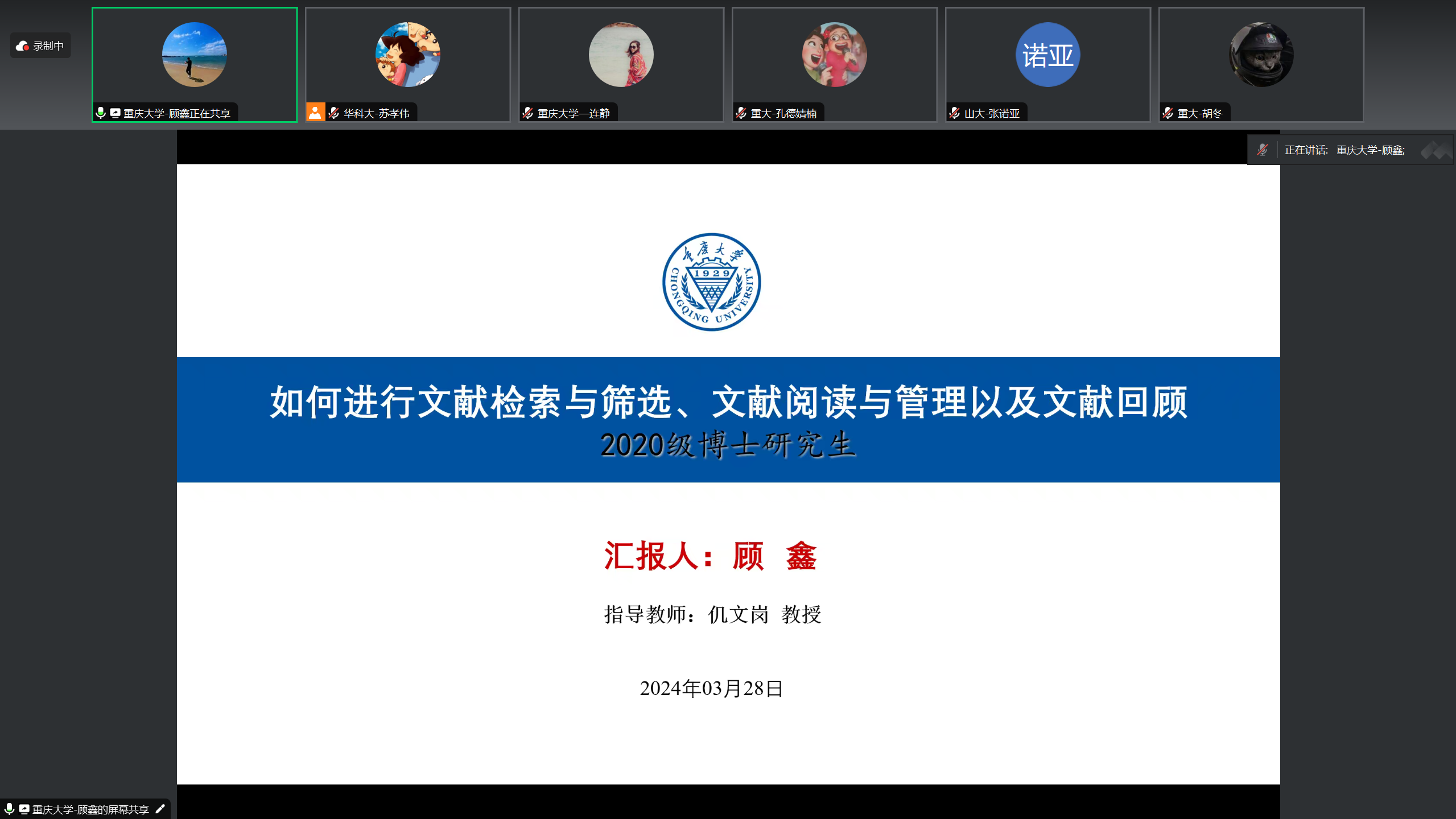 重庆大学土木工程学院创新团队研究生一、二、三党支部邀请连续两年获评国家奖学金的顾鑫同志作主题为《如何进行文献检索与筛选、文献阅读与管理以及文献回顾》的科研经验分享。他从自身科研情况讲起,为同学们分享了他硕博学习生涯过程中关于文献阅读和学习方面的经验,介绍了文献检索的四大平台、如何查找学习文献以及如何围绕研究方向开展“系统深入研究”的方法,激励同学们要提高本领潜心科研,脚踏实地把握机会,把论文写在祖国的大地上。