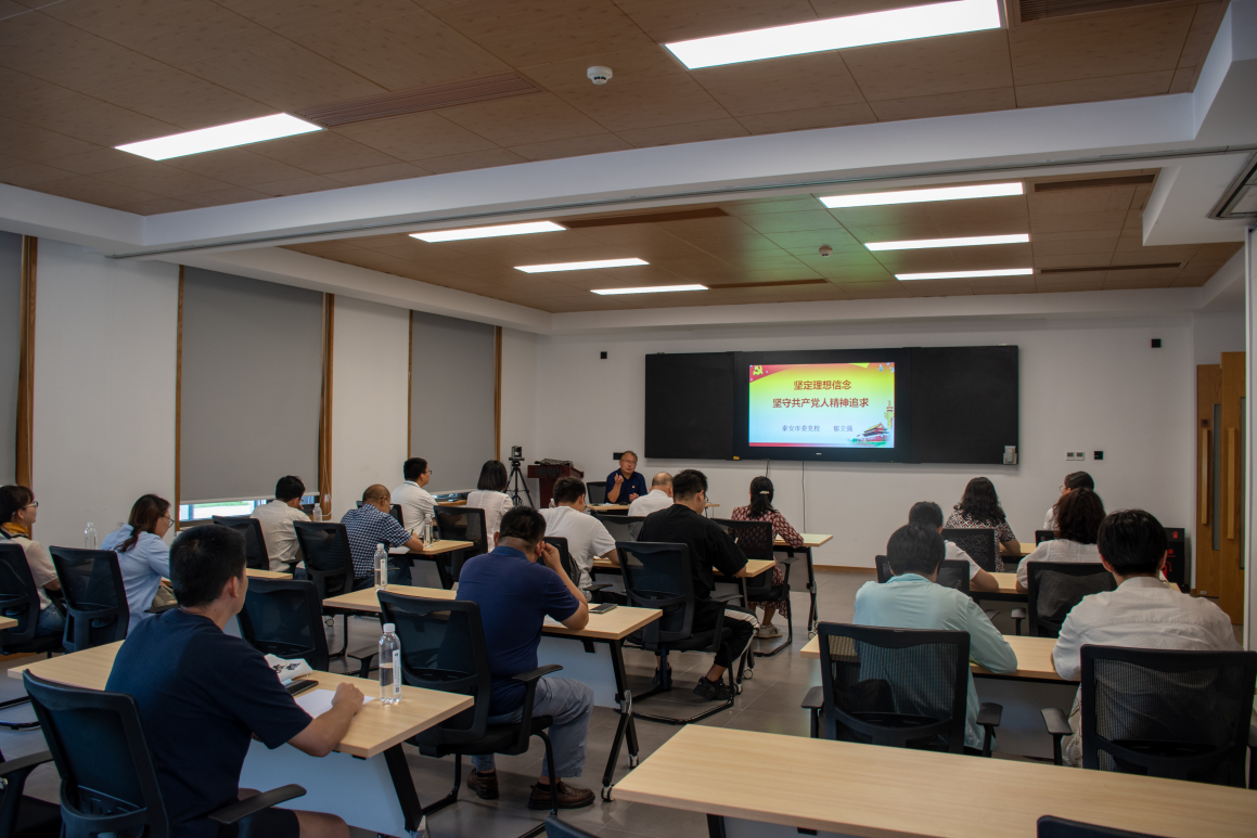 在主题党课环节,泰安市委党校郁立强教授为大家作题为《坚定理想信念,坚守共产党人精神追求》这一主题报告。报告围绕“什么是共产主义理想?共产党员为什么要坚定共产主义理想?”“当前少数党员干部在理想信念方面存在的问题及原因”“坚定理想信念,坚守精神追求,做一名合格的共产党员”三个方面进行展开,从马克思主义经典著作、扶贫榜样典型等理论和实践两个维度为大家阐述了筑牢理想信念思想根基的重要性及必要性。