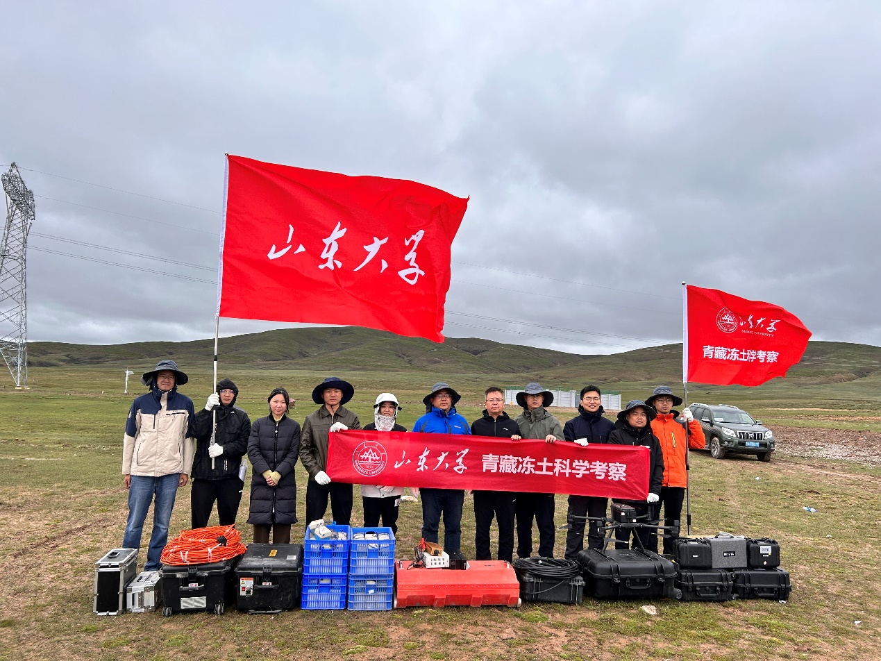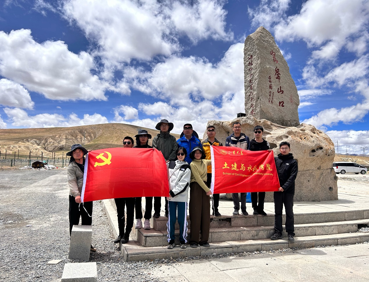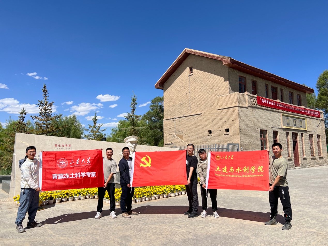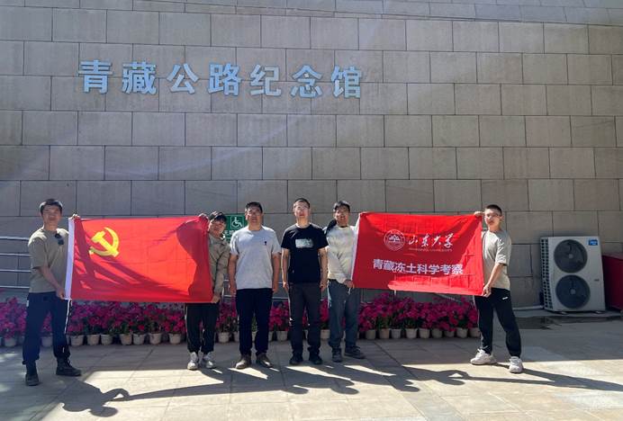 师生科研做到哪里,党旗就扎根到哪里,科考团队坚持以党建创新引领科技创新、党建与科研有机结合,不断凝聚和提升科考队的内生动力,为完成各项科考任务提供坚实的组织保障。科考期间,孙怀凤教授带领团队充分发扬“黄大年式”教师团队的育人精神和山大岩土中心党支部攻坚克难的科研精神,带领硕博研究生们一路“学、研、思”,团队先后到中交一公院高寒高海拔道路工程安全与健康国家重点实验室格尔木观测研究基地、中铁西北科学研究院冻土实验室、风火山野外观测场等地参观学习青藏公路、青藏铁路多年冻土基础理论、材料、施工、监测养护等关键技术和创新成果,克服恶劣条件,充分开展相关科研工作。与此同时,深入开展党建思想教育,感悟一代代交通人在雪域高原攻坚克难、奋勇拼搏、接续创造的伟大献身精神。