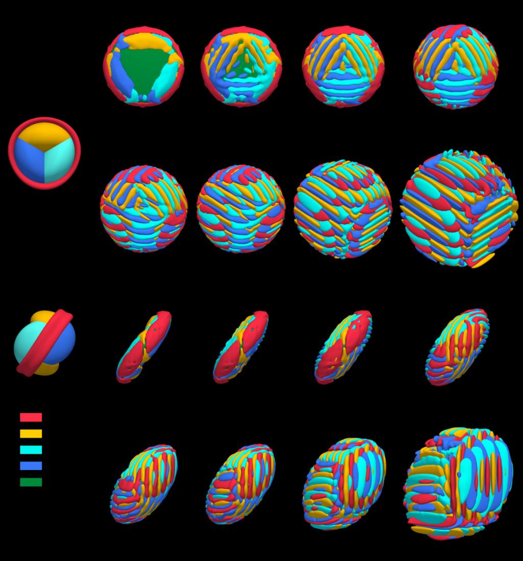 图1. Ni4Ti3沉淀相长大过程中成分非均匀场的演化。(a) 为Ni4Ti3 沉淀相的三维视图。 (b)-(h) 沉淀相周围Ni元素浓度场演化过程的二维截面图,该截面贯穿图(a)所示的Ni4Ti3沉淀相颗粒且平行于