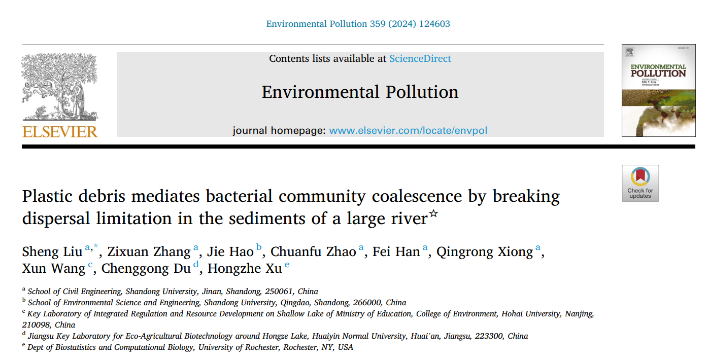 研究团队在环境类高水平期刊Environmental Pollution(IF:7.6,JCR 1区)上发表题为“Plastic debris mediates bacterial community coalescence by breaking dispersal limitation in the sediments of a large river”的原创性研究成果。水利工程系助理研究员刘胜为论文第一作者和通讯作者,该研究得到了山东省自然科学基金项目的支持,51视频
