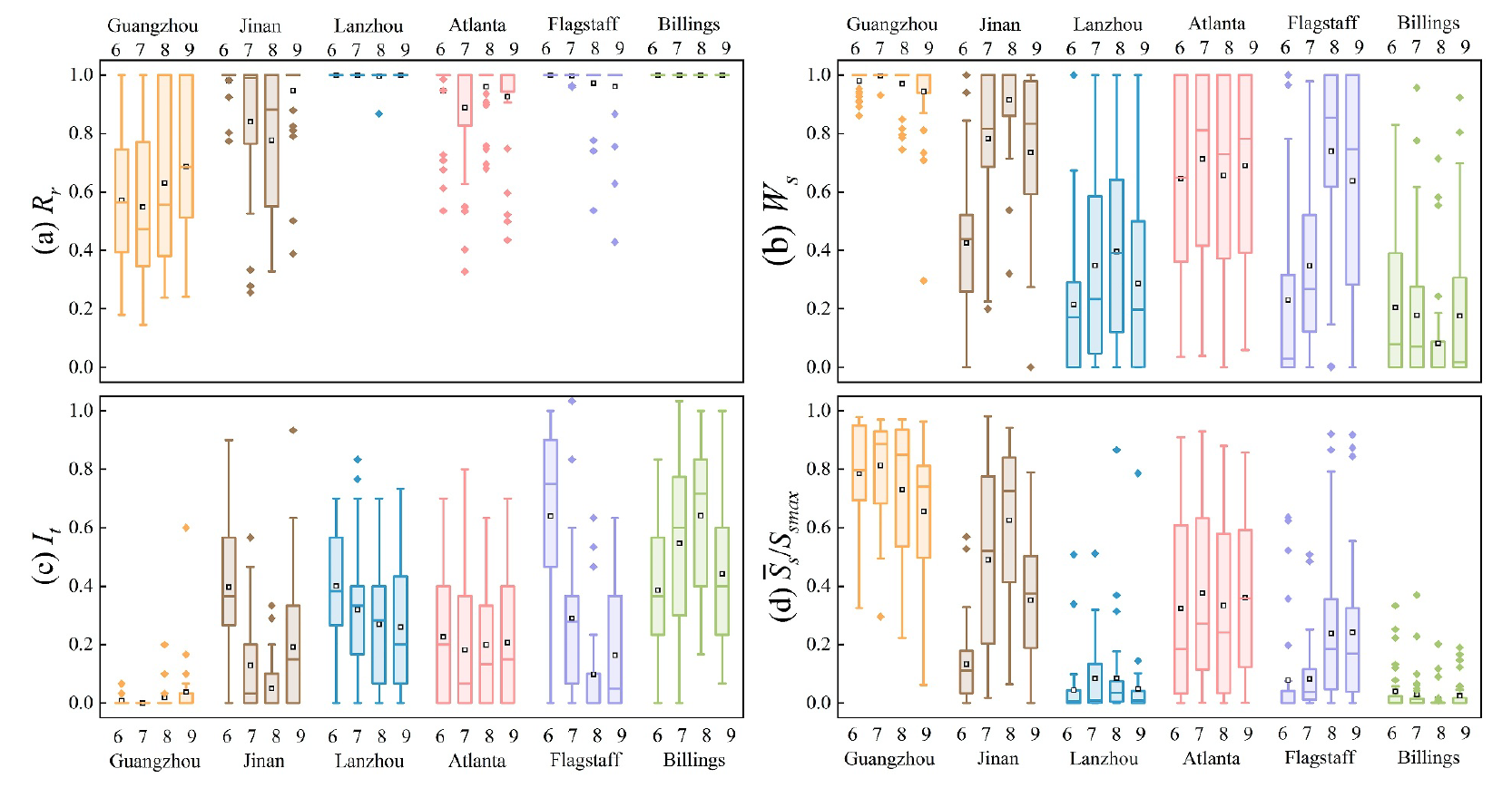 图3:六个城市蓝绿屋顶系统夏季水文效能对比图