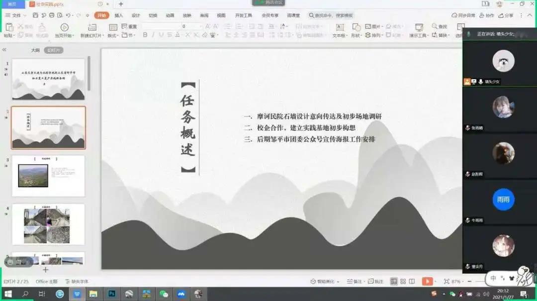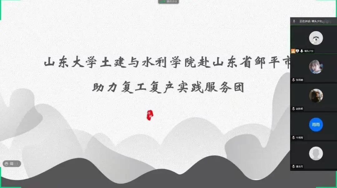 赴山东邹平市助力复工复产实践服务团开展了第一次线上开题会议,会议内容为讨论当下疫情防控环境下社会实践的工作安排。