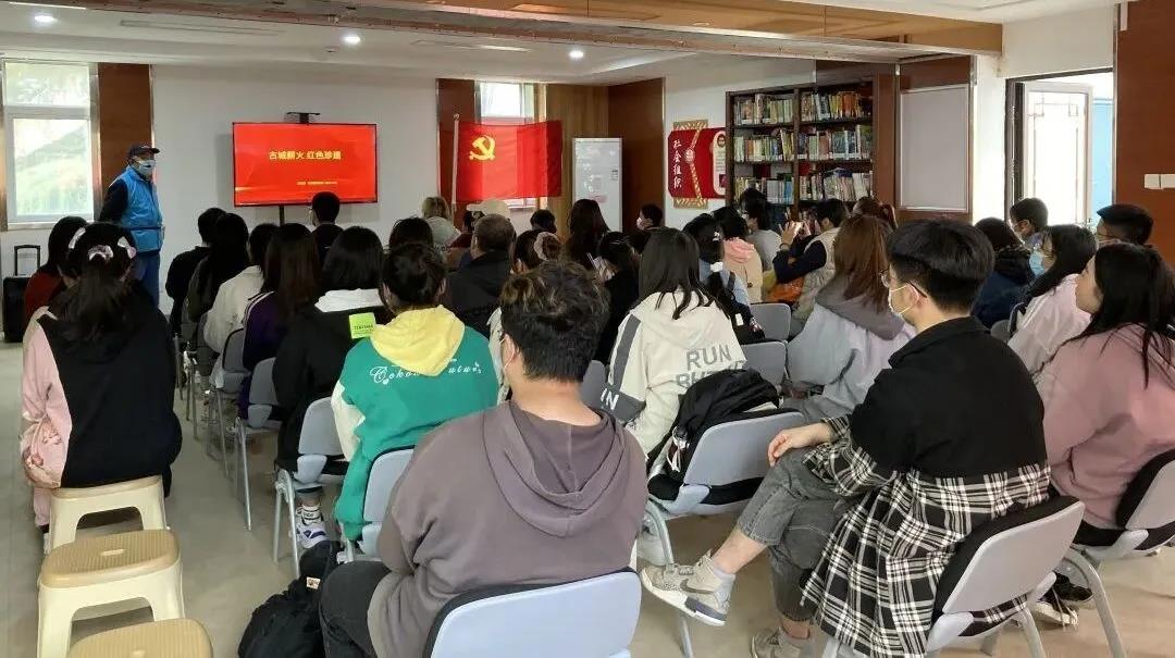 下午2时,活动正式开始,参加培训活动的成员不仅有来自不同大学的大学生,还有各个单位工作人员和街道小学的小学生。由培训人员对此次活动进行讲解,他们首先介绍了本次活动的路线以及各个标志地点有关的人物事迹。济南古城当年是山东党组织早期酝酿,传播和活动的核心区域,齐鲁书社、省立一中、省立一师,中共山东省委机关都集中在这个区域。从某种意义上可以说,济南古城是济南乃至整个山东共产主义的策源地。紧接着,培训人员介绍了解放阁和济南战役,刘谦初,邓恩铭,瞿秋白,辛锐等革命英雄的事迹,参与活动的同学都为之震撼,并受到深深的鼓舞。济南是一片红色的沃土,拥有丰富的红色资源,赓续红色血脉是当代大学生的使命担当。