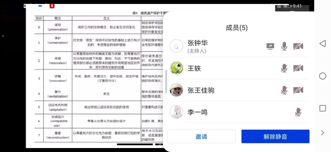 “寻筑”调研团关于暑假社会实践选题进行了讨论,并对最终选题如何开展做出了初步规划。调研团成员李一鸣、张王佳驹、王轶、张钟华、宋啸天线上参与讨论。