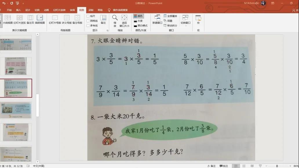 团队成员李鑫琪为学生讲述了分数乘法部分的数学计算知识。数学课程主要讲了六年级上册第一单元分数乘法的后两个信息窗。李鑫琪通过分数乘法的知识点复习,将两天学习的内容紧密连续,并利用知识点间的联系,精心设置了练习题目,使小朋友可以顺利掌握分数乘法的应用。