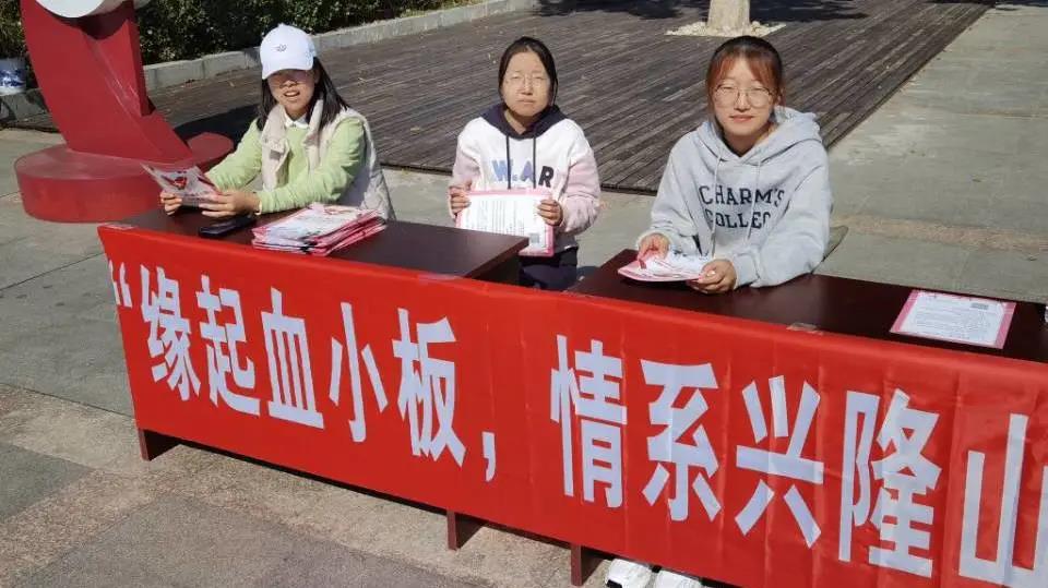 志愿服务部于兴隆山校区欣园食堂西门开设血小板捐献活动展台,活动由石继武、吕佰毅组织,志愿服务部全体干事成员参与此次活动。