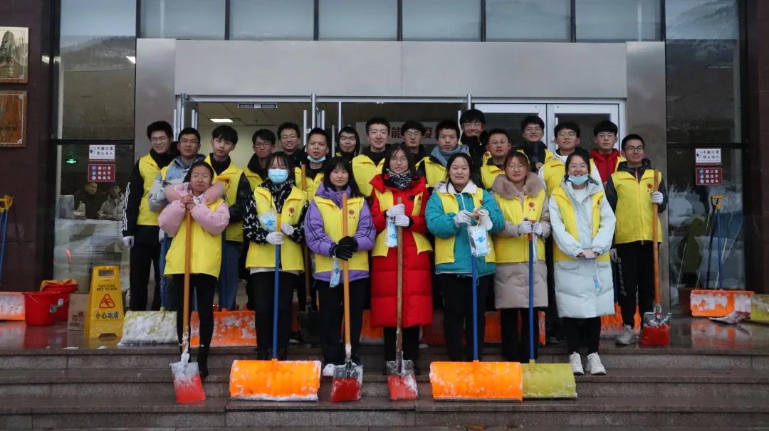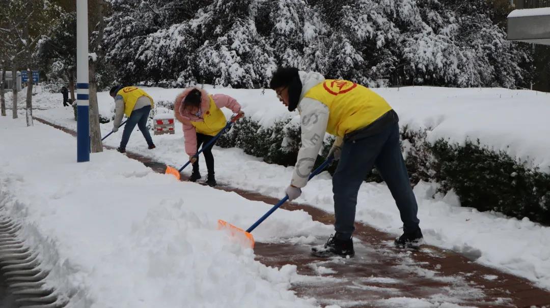 兴隆山校区白玉兰路与实验楼周围道路分别开展扫雪志愿服务活动。