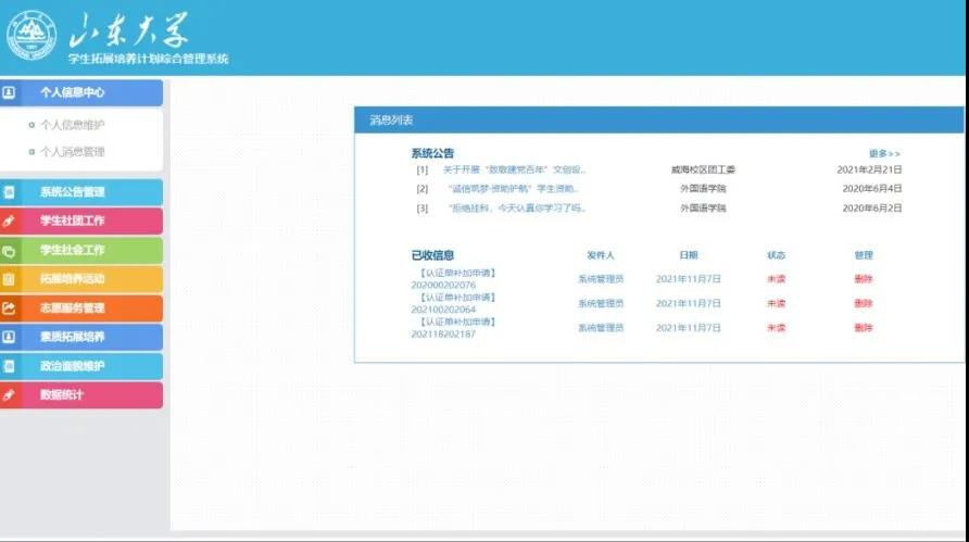 组织部负责管理学院的素拓账号,本学期完成了21级团支部素拓账号申请、各级别账号信息更新,并对学院举办的素质拓展活动进行了统计整理。