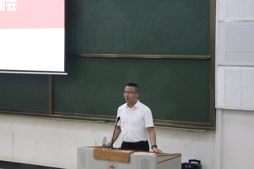 刘斌代表学院党委致欢迎词。他首先向新生表达了由衷的祝贺和热烈的欢迎,随后提出了对新生开启大学生活的建议。其一,他指出对大学生来讲学习仍是第一要务,在大学中要不断尝试找到适合自己的学习方法。其二,他强调人生没有躺赢,大学是人生的新起点,不能歇一歇、停一停、等一等,面对电子产品的诱惑,希望同学们能够保持自制力,以饱满的斗志继续奋斗。其三,同学们应该时刻保持自身发展的危机感和对知识的饥饿感,在保证专业学习的基础上实现个人全方位发展。最后,他要求同学们要树立正确的奉献观、奋斗观、专业观和安全观,努力成为堪当民族复兴重任的时代新人。
