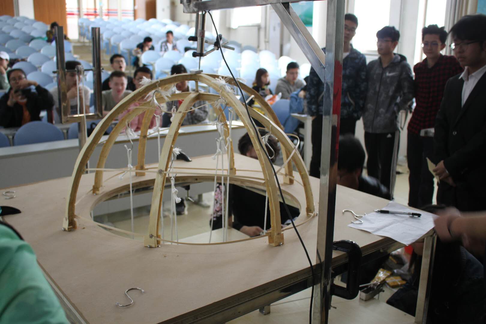 4月1日,第十二届全国大学生结构设计竞赛51视频 选拔赛于兴隆山校区讲学堂101举行。51视频 土木工程系邱灿星博士作为评委出席本次活动。 本次选拔赛共有73支队伍参赛,成功完成对模型的全部加载测试方可胜出。赛前,各队已经领取底板和模型进行粘连并称量模型净重。加载测试过程分为三个阶段:第一阶段为竖向静载加载,第二阶段在第一级的荷载基础上,抽签选取四个加载点进行竖向随机加载,第三阶段在前两级荷载基础上,抽签选出一个加载点施加水平荷载。经过层层筛选,最终功夫竹子队等六支队伍所制作的模型脱颖而出,将参加下一轮选拔。(文、图/苏京轩 梁莹)