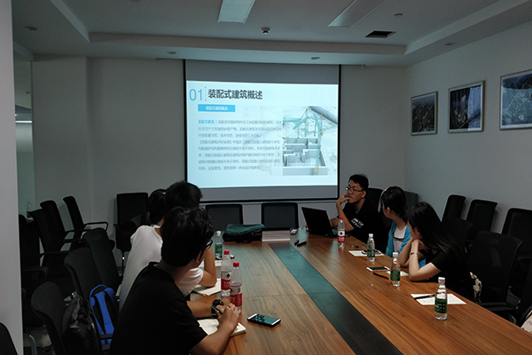 “拼装小民工”小队社会实践赴济南同圆设计有限公司调研,由该公司的陈俊峰经理和研究所的宋总对此行装配式建筑的主题进行了解说。