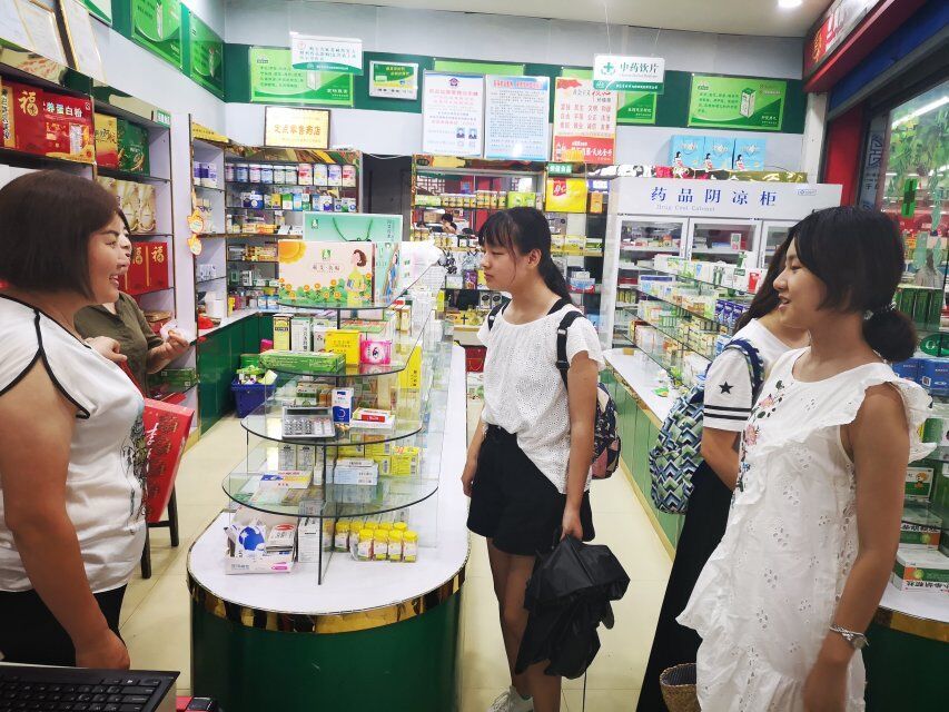 “蕲都大艾”社会实践调研团成员分工协作,以三至五人为一组,分别赶赴漕河镇和大同镇,详细考察了当地药店的蕲艾销售情况。其中以大同镇大同街的同仁堂和李时珍大药房,漕河镇中心街道的李时珍大药房为主要代表。