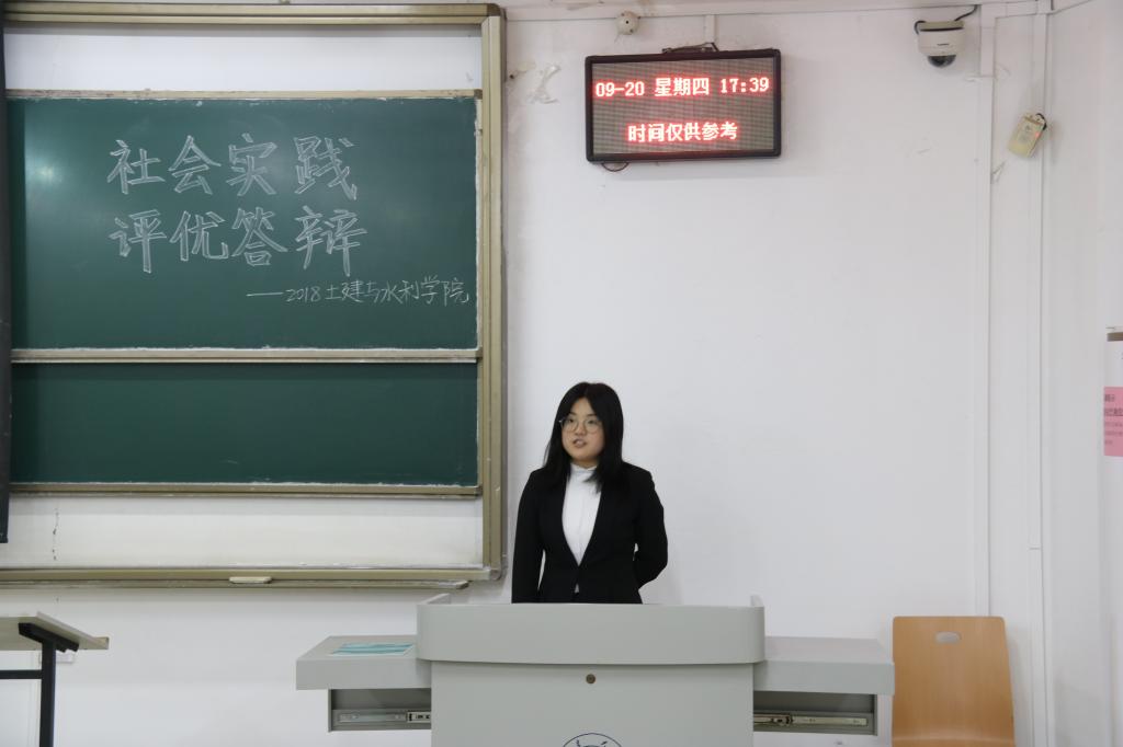 本次共有来自两个年级的28个社会实践队队长进行社会实践团队评优答辩。下午4点,答辩会正式开始,各参赛人员按照抽签顺序依次答辩。本次暑期社会实践活动包括支教、采访调研、问卷调查、参观走访等多种形式,团队队长分别从队伍介绍、实践背景、实践过程、活动成果、活动意义等方面进行了介绍,并向在场评委展示了活动过程中的照片和文字记录,更直观地阐述团队所做活动,团队发言人还展示了成员们在社会实践活动过程中的心得体会,从而体现出社会实践活动的积极意义。答辩期间,辛帅还强调了答辩所用PPT的视觉效果,并提醒参赛选手制作文字时要兼顾在场观众。