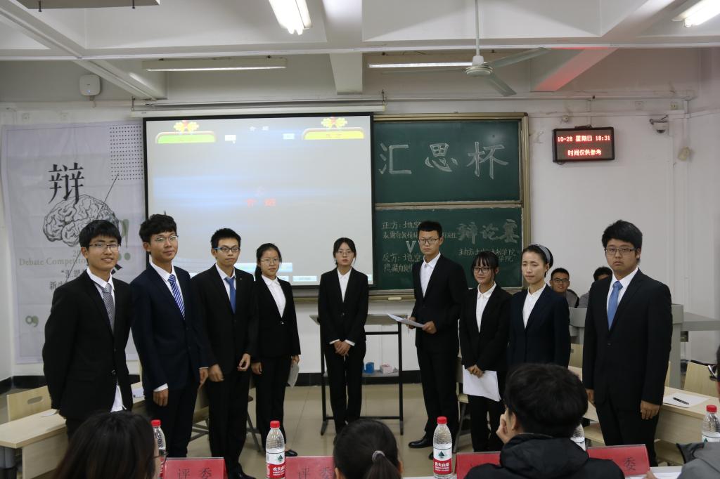 辩论队领队马震林、交通学院辩论队领队陈涵宇、曾佑真及两院资深辩手担任比赛评委,来自四个班级的辩手到场参赛。