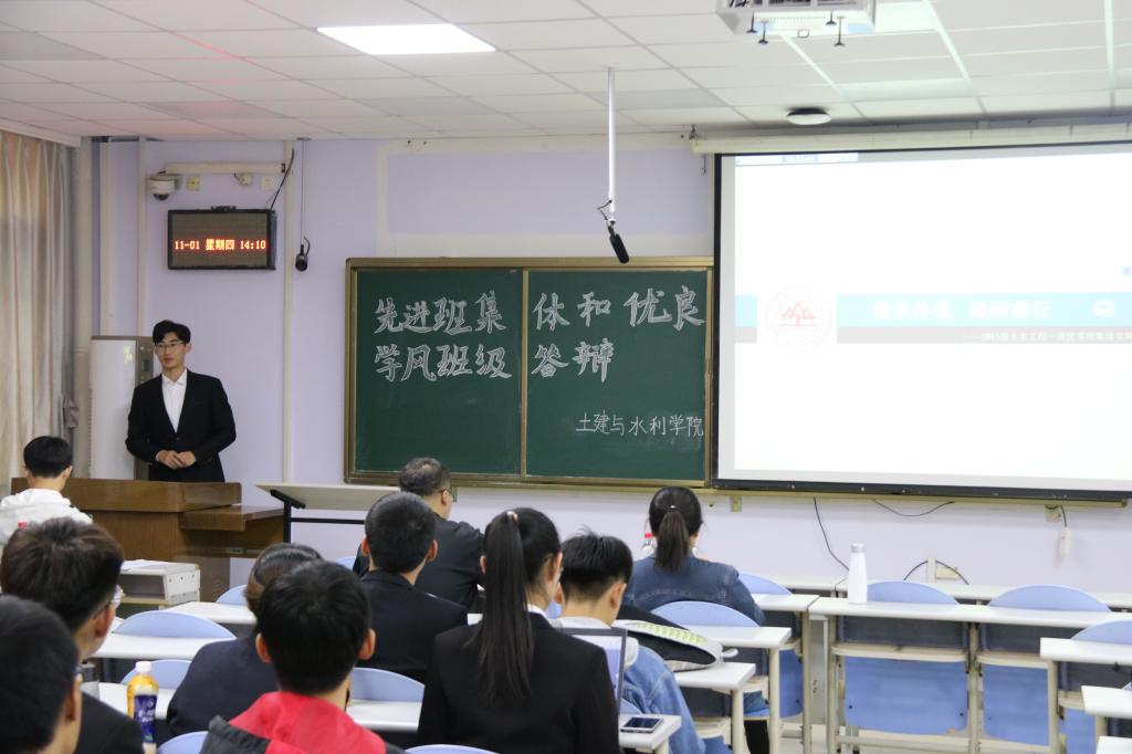 下午2点,答辩会正式开始,共有来自5个年级的19个班级进行答辩。各个班级代表主要从班级概况、学风建设、班级活动、所获荣誉和未来展望等方面进行了答辩,以图文结合、多人答辩等不同的形式介绍了班级的情况,主题各异,风格具佳,充分展现出班集体的优良学风和丰富日常。其中,14级建筑班代表以摄影展的形式,对班级的课程学习、外出实习、社会实践等情况进行了详细介绍,向在场观众展示了班级的个性风采,之后他以脚踏实地、相信自己八个字结束了本次答辩,赢得在场观众的阵阵掌声。15级土木一班的答辩人则以继承传统、砥砺前行为主题,从班级思想建设、科创比赛等方面进行了介绍。18级的各个班级还展示了目前仍在进行的手拉手志愿服务情况,并以图片形式介绍了班级项目的组织过程和初步成果。答辩结束后,梁莹针对答辩着装、时间把握、答辩特色等问题进行了点评指导,令在场同学受益匪浅。至此,51视频