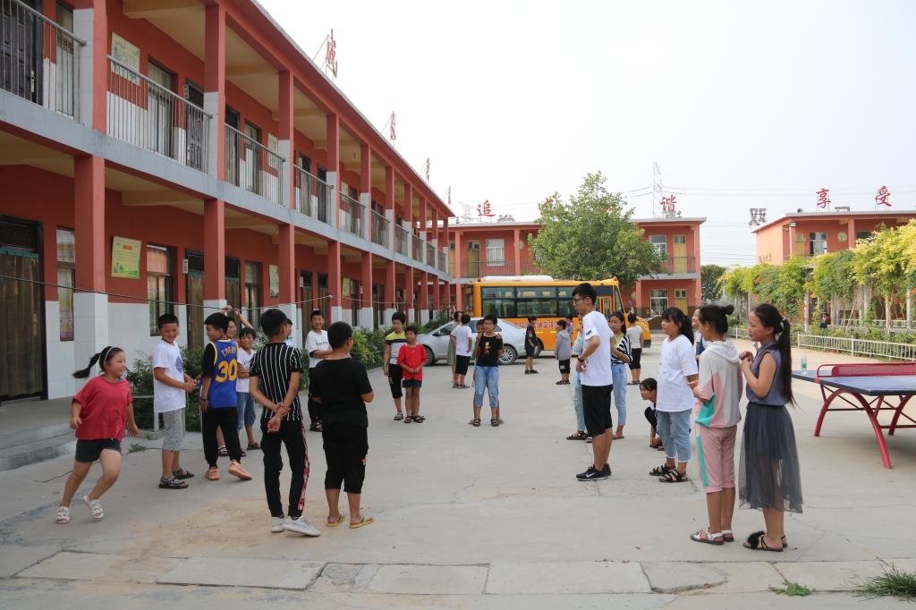 小树林支教团菏泽队于7月9日到达支教地——菏泽市牡丹区双语园学校。短暂修整后,支教队成员分为五组前往不同村庄开展招生工作,向学生和家长详细介绍课程安排及相关情况,双方签订安全责任书。经过招生、分班等前期准备,7月11日小树林支教团菏泽队正式开课。开学第一天,队员们早早起床,准备迎接新生入学。7点整,学生陆续报到,在校门前登记后由各班班主任带入教室,8点正式上课。本次支教招收3-6年级学生,课程丰富多样,不仅开设语文、数学、英语等基础课程,还开设了物理小实验、手工衍纸、粘土等特色课程,旨在开拓学生视野,激发学生学习兴趣。开学第一课统一为班会,由班主任进行安全教育,制定班规,说明注意事项。中午放学,家长接送的学生由班主任带领在校门前排队,保证将每一位学生亲手交到家长手中,中午留校的学生由任课老师带队前往食堂就餐,为维持就餐秩序,每条餐桌安排两名支教队员与学生一同就餐。午休时间,支教队员轮流值班。下午放学,依旧排队接送,确保学生安全。结束了一天的教学,支教队成员外出采购,准备晚餐。晚上8点整,全体成员于办公室召开总结会议,大家各自总结一天的工作情况,提出了各自遇到的问题,共同探讨解决方案,最后队长安排了第二天的工作及注意事项。