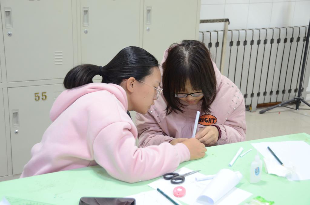 上午8点30分,主持人宣读比赛规则后大赛正式开始,各队伍迅速投入到模型制作过程中。每位队员精神饱满,专注于自己的工作,细心严谨地完成每一个部件的制作。根据大赛要求,参赛队伍需在规定的两个小时内,利用5张A4纸和胶水、剪刀等简易工具制作出高度不低于150mm的模型。承办方将从自重和承重两个方面对参赛模型做出评判,即自重越轻且承重能力越强的模型所属队伍获胜。