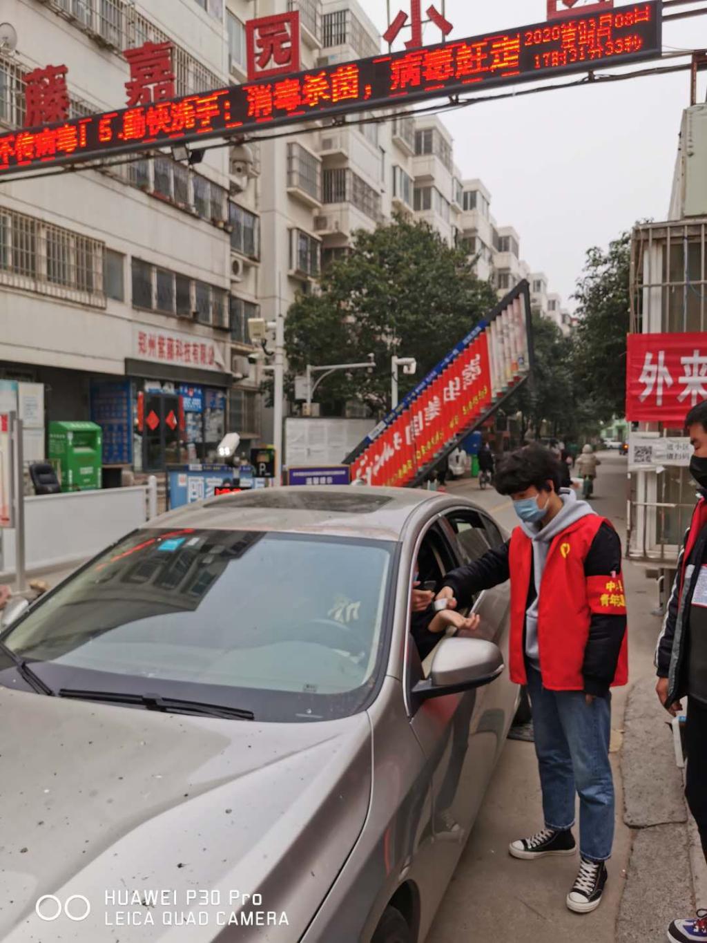 “您好,进出小区请先扫码核实一下信息。”“叔叔,麻烦您车辆靠边儿,我们来给您测一下体温。”……这是我们工作的日常,配合社区工作人员一起轮班值守,坚守在小区大门口,排查重点人员、量体温、发放出入通行证并进行登记。值班之余也帮助社区工作人员建立人员流动平台信息,以走家串户发放宣传材料、张贴宣传海报、悬挂横幅等多种形式,积极宣传防控政策和防疫知识,劝导群众戴口罩、少出门、不聚会,避免人群聚集。虽然志愿者的力量微不足道,但是听到社区居民的一声“谢谢”,看到社区居民主动配合工作,还不忘提醒我们志愿者注意防护,心里觉得暖暖的。得知我们是大学生志愿者时,热心居民鼓励我们“你们大学生真棒,给你们点赞”,“你们大学生可是国家培养的人才啊,在关键时刻能主动站出来,真不赖”。
