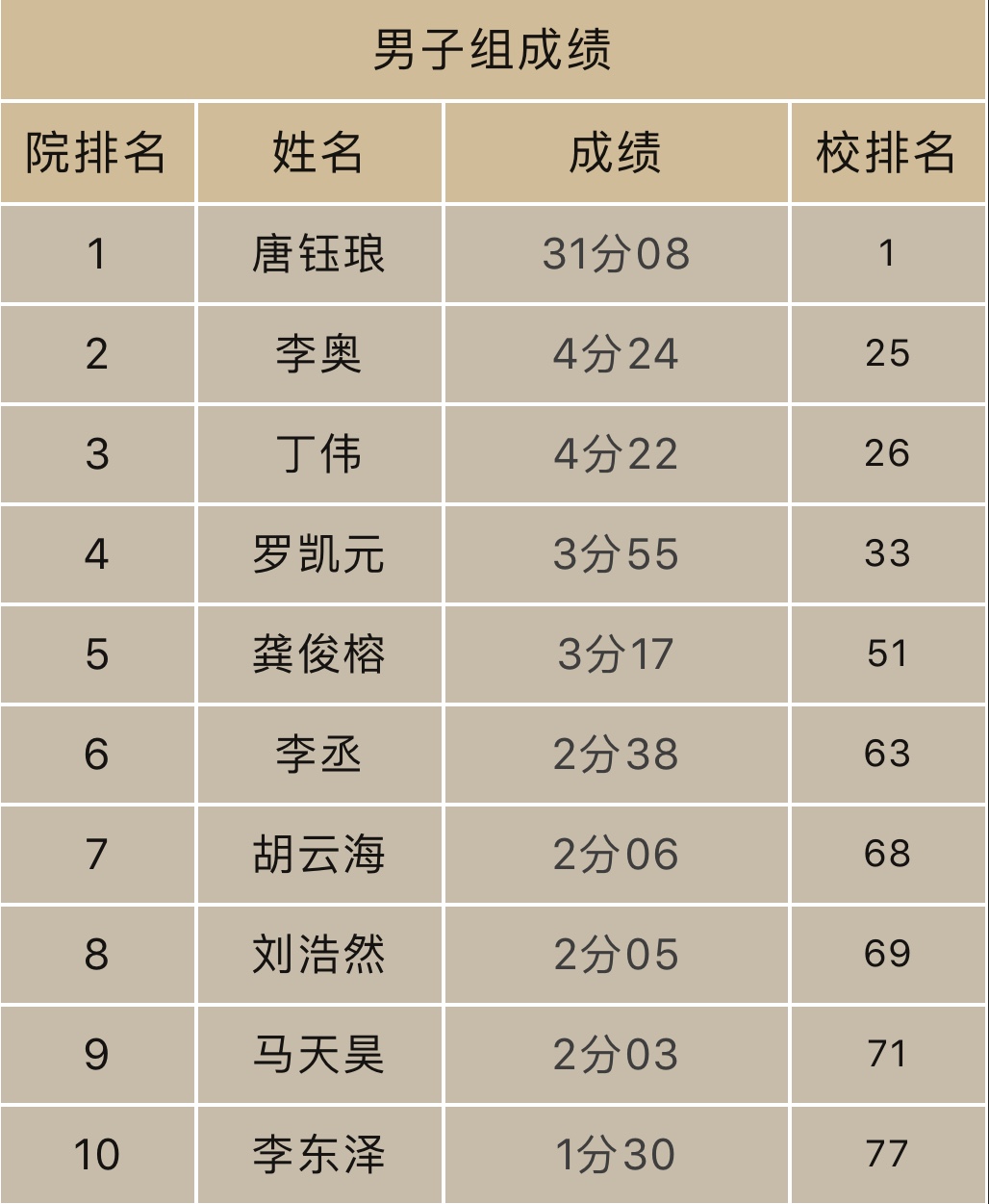 代表队再次传来捷报,取得团体总分冠军的佳绩,学院唐钰琅同学以31分08秒的成绩夺取该赛事男子组总冠军。