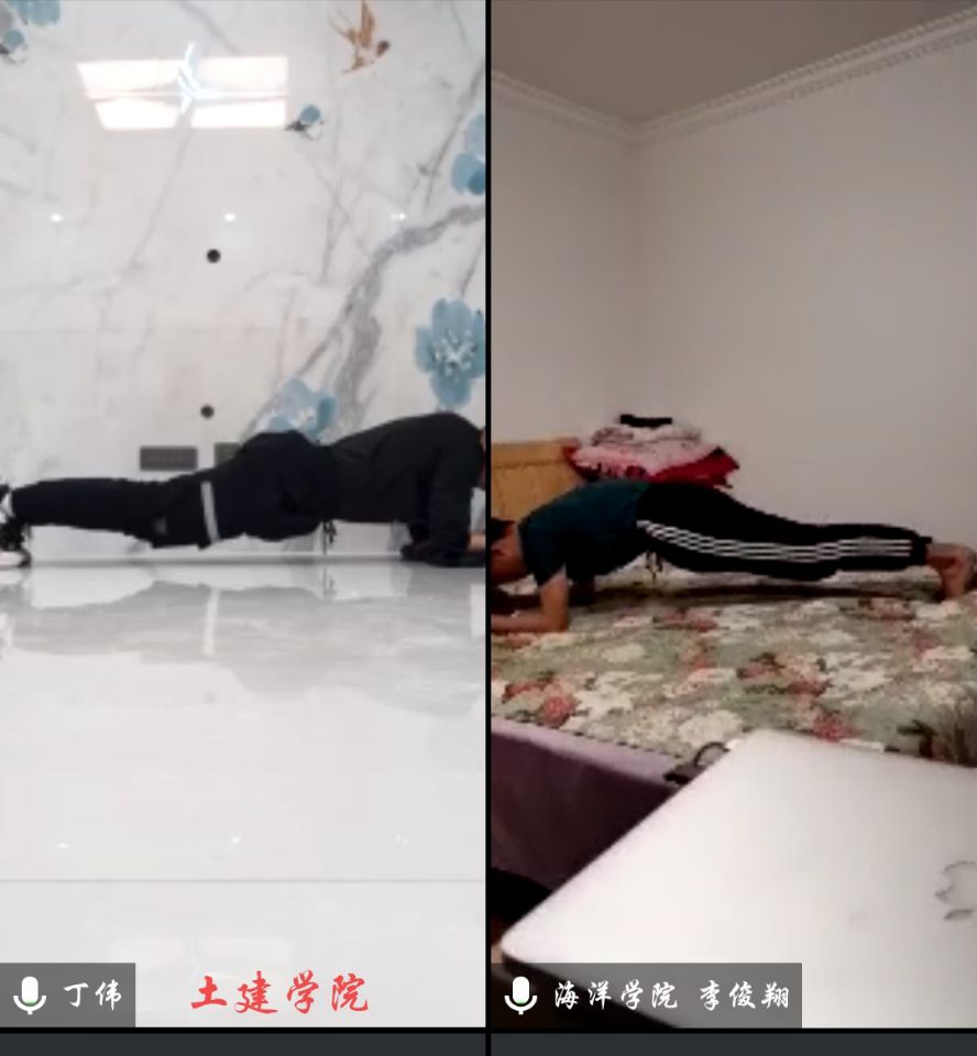 和海洋学院分为一组,在同一会议室里同时进行。裁判员老师严格执行比赛标准——身体呈一条直线,全程静止,大臂之间距离与肩同宽,且与地面垂直,直到动作完全标准才开始计时。在参赛过程中,学院的每一位同学都完美地执行了这一标准,会议室等待比赛的同学也积极为参赛同学加油喝彩,展示了一个强大、自信且团结的51视频