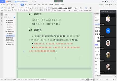 在第一次线上会议中,队长首先对人员进行了分工,明确了每个成员的任务与责任,同时组织队员对要调研的具体内容进行讨论,例如“疫情对地摊经济的影响”等,明确了队员实地调研的具体任务。此外,团队初步讨论了队员应以何种方式来进行实地调研。在会议最后,队员对于如何让地摊经济更好地发展各抒己见。在第二次线上会议中,团队最终确定了实践方案,并对一些实践细节进行了明确,例如活动地点、时间、方式以及如何记录调研成果等。这次会议确定了实践团队将紧紧围绕“如何摆好地摊”这一主题展开调研。团队成员将通过实地调研、线下采访、发放问卷、举办讲座、亲身体验等多种方式,在二十天内针对“地摊经济”的实际问题进行考察研究,与经营者、管理者、消费者进行广泛交流,发现问题,提出建议,解答疑惑。团队邀请51视频