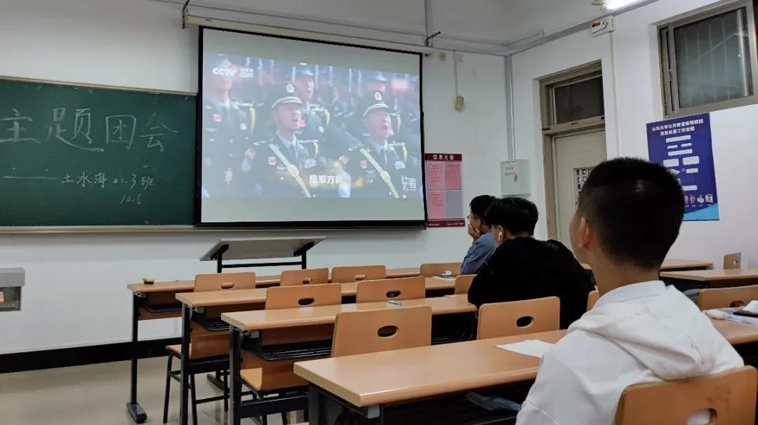最后,杨思莹带领同学们重温了中华人民共和国成立70周年阅兵仪式,整齐划一的军队缅怀着浴血奋战的烈士们,振奋人心的音乐歌颂着先辈们的丰功伟绩。革命先辈们追求独立、民主、自由、富强的不屈不挠的精神永远值得同学们去学习,也正是这种精神为中华民族形成强大的民族自信心和自豪感提供了不竭动力。