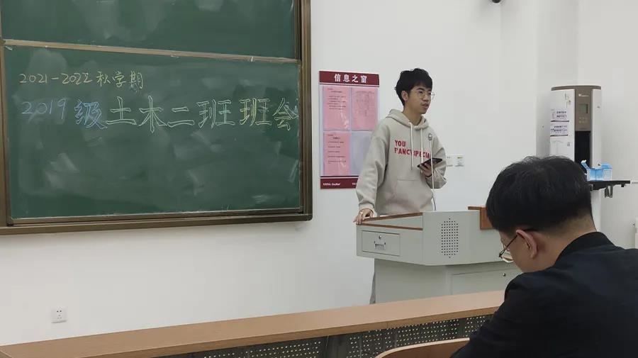 2019级土木二班于兴隆山校区教学群楼3207召开新学期第一次班会。会议由班长张政主持,辅导员赵志强,班主任段抗出席,2019级土木二班全体同学参加。