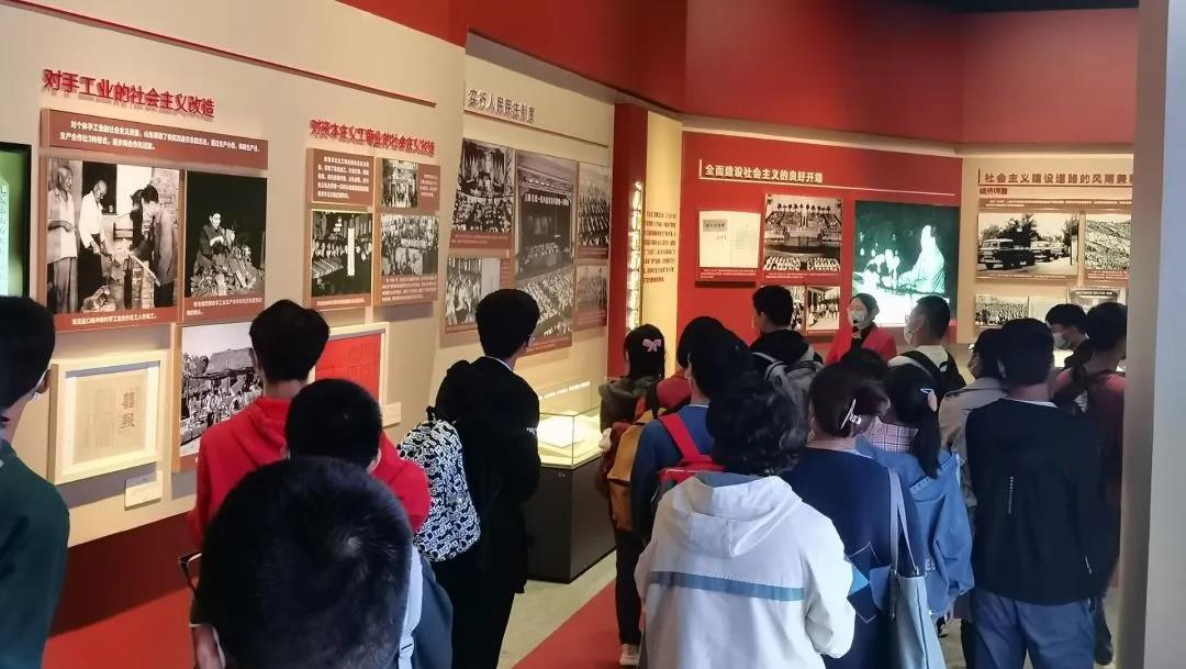 艰辛探索,砥砺前行。在展厅中,新中国成立之时升起的第一面国旗让大家感受到了历史的韵味。鲜红的国旗让大家想起毛主席宣布新中国成立的画面。“一五”计划展现了党和人民奋发图强的努力与不畏艰难的探索,他们筚路蓝缕的精神即使在发达的当代,依旧值得同学们回味和学习。
