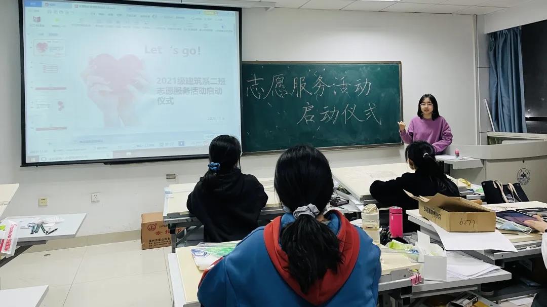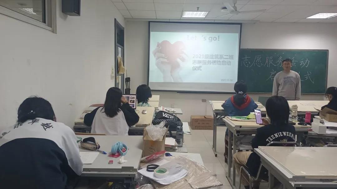 2021级建筑二班在教室开展“手拉手”志愿服务活动启动式。启动仪式由团支书王志杰主持,2021级建筑二班全体同学参与。