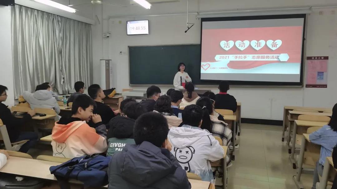21级土水海建筑工程一班于教学楼开展“手拉手”志愿服务活动启动仪式暨动员大会。本次活动由团支书孔婧主持,全体同学参加。