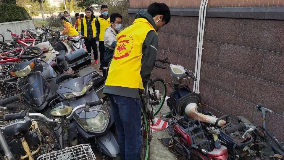 据了解,长时间无人问津的废旧车辆被堆放在教学楼前。随着车辆增多,教学楼显得十分脏乱。本次活动旨在通过重新摆放自行车,改善校园面貌,减少安全隐患。