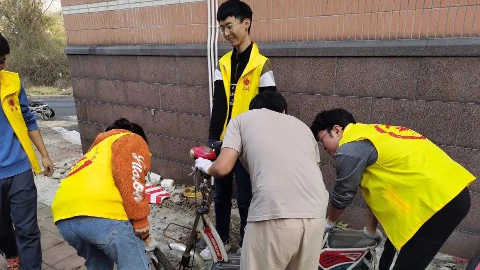 2020级工程力学班于兴隆山教学楼A座前开展“整理废旧堆积自行车”志愿服务活动。本次志愿服务活动由团支书郭明锐带队,2020级工程力学班部分同学参加。