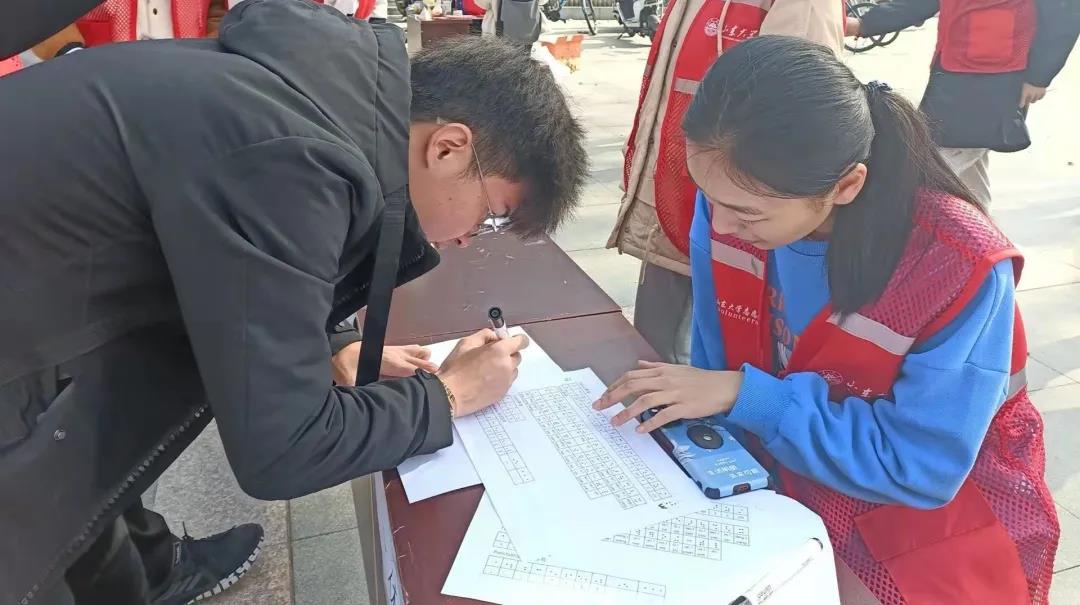上午10时,土木一班全体同学于欣园餐厅西门集合,按照事先分工将桌椅、横幅、礼品等物资搬运至场地。“易书有你”活动为设置了“易书站台”,为广大同学交换、捐赠书籍提供平台,让好书“活起来”,同时减轻宿舍内放置储存空间不足的压力,此外活动还增设线上“易书交流群”,让图书的交换流程便捷灵活。“交换人生五分钟”主要为同学们提供残疾体验活动,分为左手写字、蒙眼走路、单手系鞋带、你画我猜、书写盲文五个版块。活动中同学们体验了短暂的盲人与残疾人生活,亲身体会到残疾人行动上的不易。