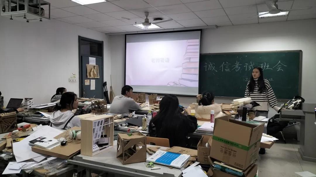 12月17日下午6时, 2021级建筑系二班于兴隆山校区实验楼524教室开展诚信考试主题班会。班长许阳主持,班主任赵亚琛出席,建筑系二班全体同学参加。许阳向同学们详细解释了考试守则的具体内容,强调了诚信考试的重要性。班主任赵亚琛提醒同学们考前调整心态,注意饮食;考后适度放松,合理规划时间。通过本次班会,同学们加强了诚信考试的意识,将以良好的精神状态面对接下来的考试。