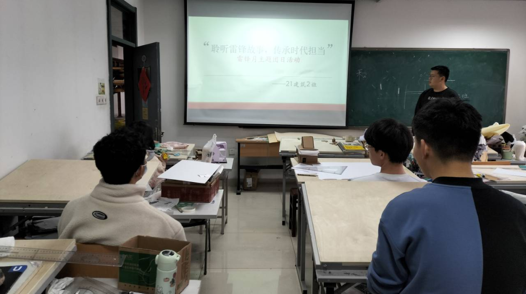 3月12日下午4时,2021级建筑系二班于实验楼524开展雷锋月主题团日活动,团支书王志杰主持,2021级建筑系二班全体同学参加。大家观看了“雷锋是怎样炼成的”主题影片,深入学习雷锋精神。王志杰向大家介绍了“当代雷锋”郭明义的事迹,号召同学们向榜样学习。本次主题团日活动弘扬了雷锋精神,有利于帮助他人的良好风气的建设。