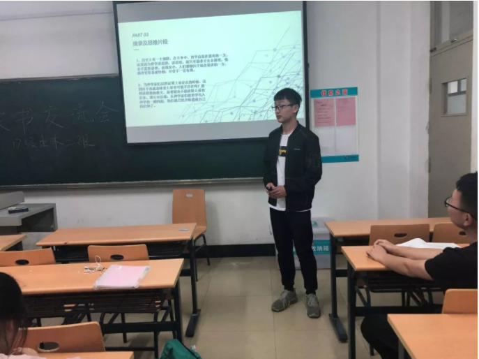 本次读书分享会上,四名同学结合PPT和图文展示等多种形式,详细介绍了书籍内容,分享了个人的读书心得,在场同学认真聆听,受益匪浅。此次活动的开展有利于班级形成浓厚的思想交流氛围,增强了班级凝聚力。